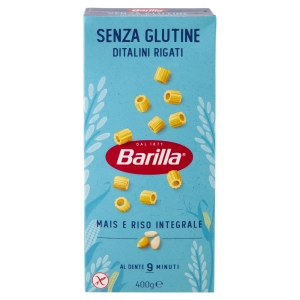 Barilla Ditalini Rigati senza glutine to bezglutenowy makaron w kształcie krótkich, małych rurek. Jest idealny dla osób z celiakią lub nietolerancją glutenu, które nie chcą rezygnować z dań makaronowych. Najnowsza receptura Barilli to połączenie mąk z białej i żółtej kukurydzy oraz brązowego ryżu, która sprawia, że Ditelini senza glutine ma naturalną konsystencję oraz harmonijny i zrównoważony smak. Bezglutenowy makaron Ditalini idealnie pasuje do zup, sałatek i dań jednogarnkowych.