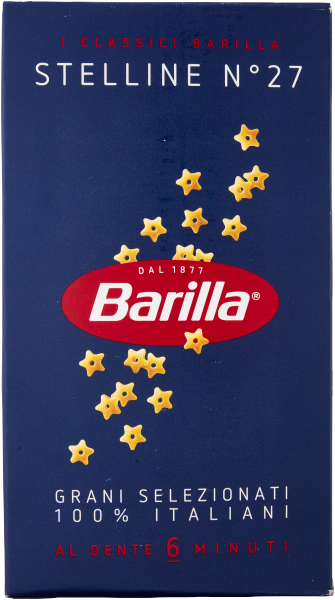 Barilla Stelline '27 to włoski makaron gwiazdki, to klasyk w świecie makaronów. Te malutkie gwiazdki z dziurkami w środku znakomicie smakują w bulionie. Świetnie pobudzają ciekawość i apetyt dzieci. Ten praktyczny makaron do szybkiego gotowania został stworzony, aby wprowadzić najmłodszych w przepyszny świat makaronów.