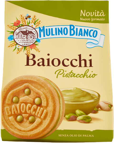 Mulino Bianco Baiocchi Pistacchio - ciastka z nadzieniem pistacjowym